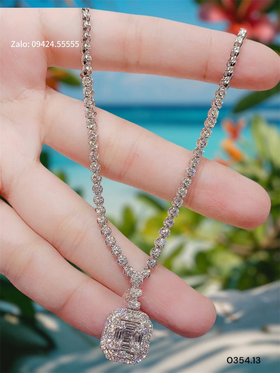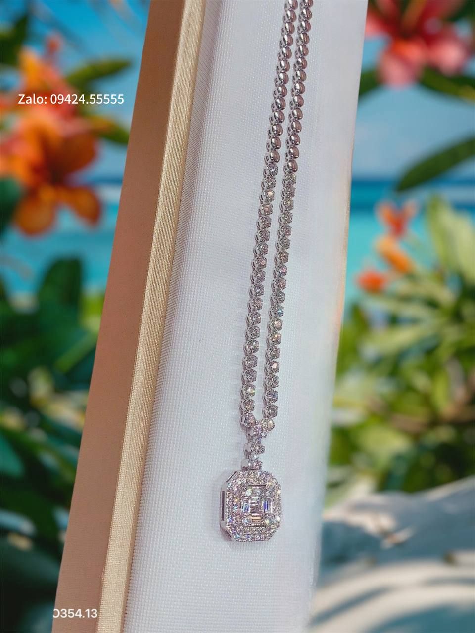Dây Chuyền nữ mặt tấm halo vuông